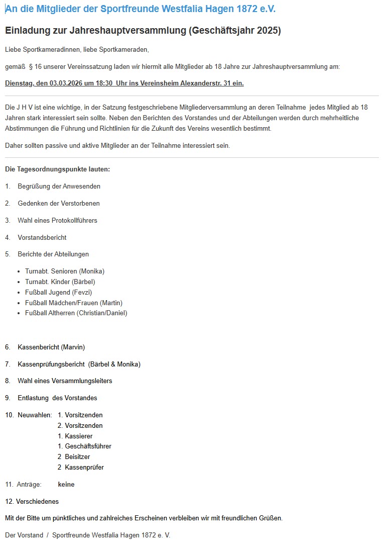 Einladung zur Jahreshauptversammlung